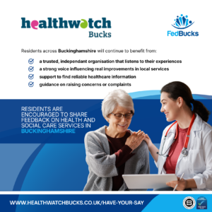 Zoe McIntosh, Chief Executive, Healthwatch Bucks, says, “Healthwatch Bucks will continue to champion the views of local people, working with the NHS, the Council and other health and care providers to ensure services meet the needs of the community.”